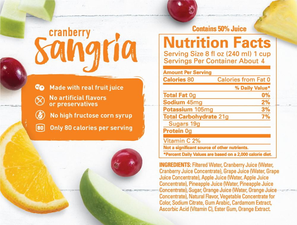 Its the taste that takes you away. Weve paired crisp taste of cranberry with pineapple citrus and apple to create a sophisticated sangria blend thats perfect to enjoy straight from the bottle or mixed with sparkling water wine or liquor. Up to 7 cash back Its the taste that takes you awayOcean Spray Cranberry Peach Bellini Juice Mocktails 1 Liter Bottle Crafted with a blend of real fruit juices including cranberry peach and lemon Ready to drink just 90 calories per serving Drink Cranberry Peach Bellini juice mocktails as is or mix with sparkling water or liquor Easy mocktail with the taste that takes you.