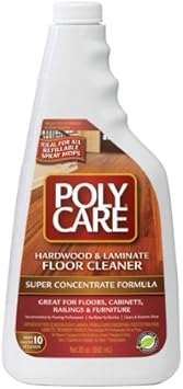 Using the PolyCare mop from the Mop Kit spray cleaner onto the terrycloth cleaning pad then wipe floor. Also ideal for all refillable spray mops. Ready to use Hardwood floor and and laminate floor cleaner is recommended by flooring professionals as a safe cleaner for all polyurethane finished wood surfaces such as kitchen cabinets handrails stairs moldings and furniture.