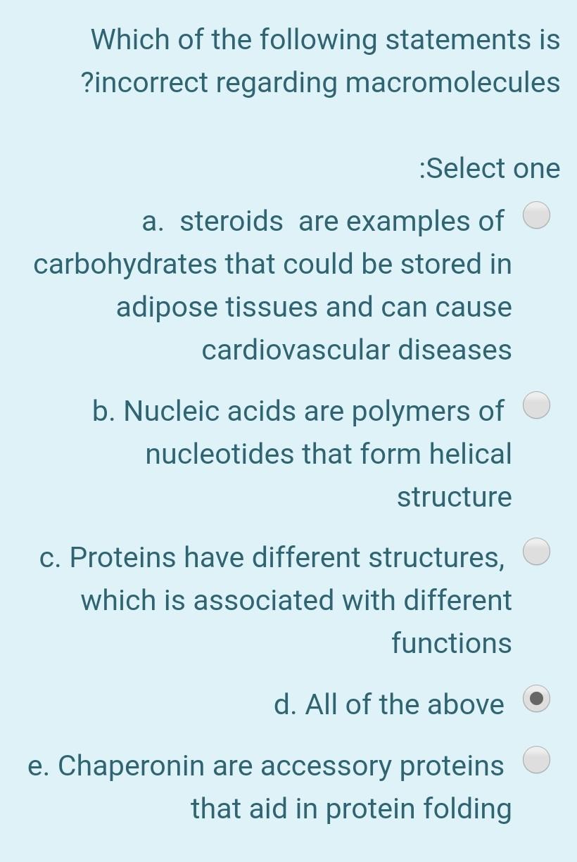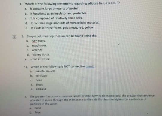 Storage of fat acts as an energy reserve long term storage and is incorporated into adipose tissue. Circulating mediators of inflammation participate in the mechanisms of vascular insult and atheromatous change and many of these inflammatory proteins are. Dolichos biflorus lectin generally does not agglutinate A 2 RBCs B. When HDL is low and LDL is high the risk of cardiovascular disease is lessened. Which of the following statements is true. If a patient has the correct amount of T3 T4 their TSH value will be normal. All of the following statements refer to events of tissue repair.