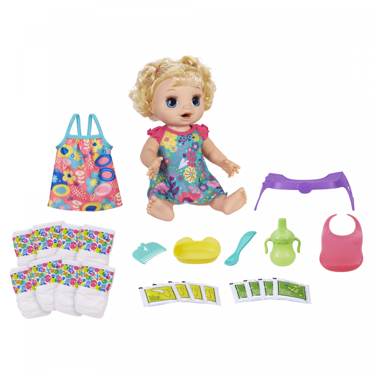 Baby alive doll eats real food. Doll comes with dress bib bowl spoon bottle 2 diapers 2 doll food packets and instructions. Help your child feed her the included package of doll food mix and then change her diaper when she poops and pees. Stock up for doll-feeding fun with the Baby Alive Solid Doll Food refill pack.