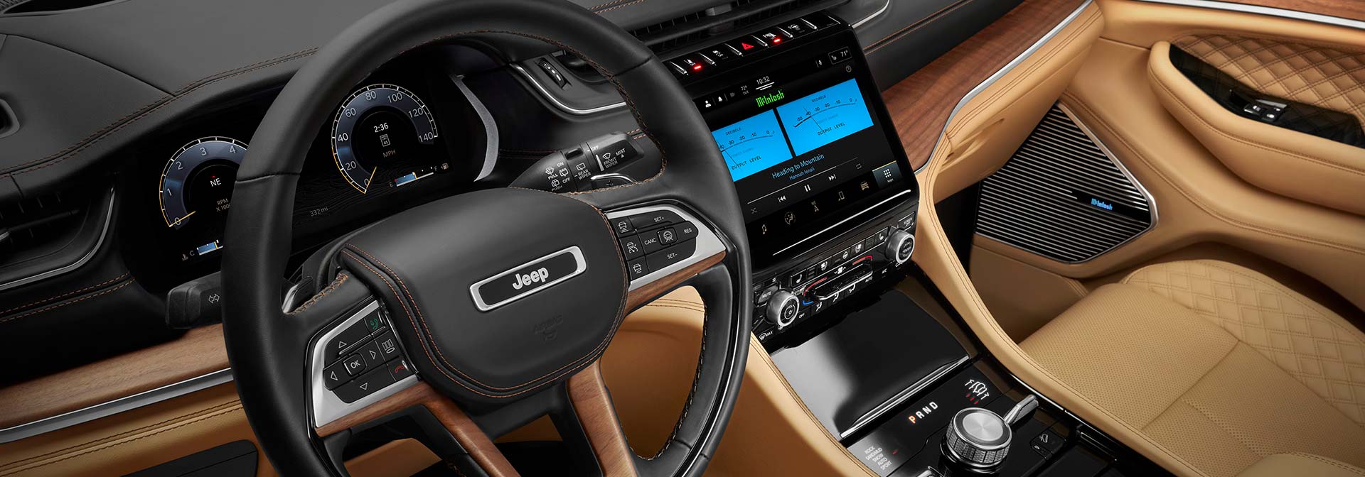Every seat is its own sweet spot with finely-tuned bass so all passengers feel like they are in. The MX950 McIntosh Entertainment System for the Jeep Grand Cherokee will take sound quality to the next level much the same way Jeep Grand Cherokee has repeatedly reset the bar in. The McIntosh MX950 Entertainment System available in the 2021 Jeep Grand Cherokee L offers crisp high-quality sonic reproduction with low distortion and rapid response.