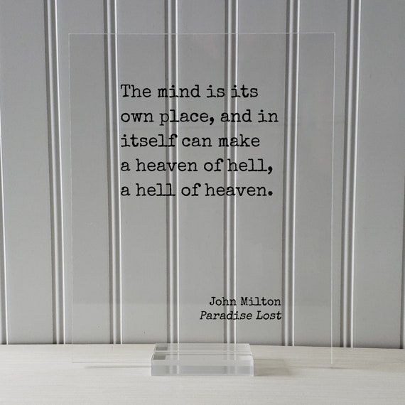 The major premise upon which his argument depends is this. Milton 1667 This is a topic of essay also. The mind is its own place and in itself Can make a Heavn of Hell a Hell of Heavn A quote from John Miltons Paradise Lost. Your mind can transform any place into one that you would hate or a place that you love. The mind is its own place and in it self Can make a Heaven of Hell a Hell of Heaven. There is a saying that both heaven and hell coexist on the earth. The mind is its own place and in itself can make a paradise from adversity or create a prison from blessing - John Milton. It means that whatever joys we experience in this life is the real heaven and whatever sorrows. This line is spoken by Satan in the epic poem Paradise lost by John.