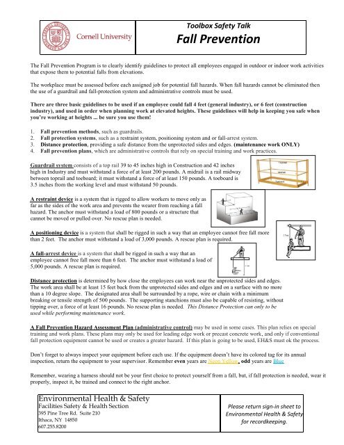 Otherwise print not equal. The equipment used is body harness anchorage and connector etc. OSHA 1926501b4i cites personal fall arrest systems covers or guardrail systems erected around holes and skylights as acceptable methods for preventing workers from falling through a hole more than 6 feet. Fall arrest protection on the other hand is the backup system for someone who must enter a dangerous area. Fall protection refers to equipment used to mitigate or limit the effects of a fall from a height. ANSI Z3590-2012 section 269 defines a Fall Protection Procedure as A written series of logical steps that describes in detail the specific practices equipment and methods to be used to protect authorized persons from falling when exposed to fall hazards Fall protection system planning should. Fall Prevention Program pamphlet is given to either the patient or family members as appropriate. Validation of icons to communicate fall risk status and tailored interventions to prevent patient falls. The fall potential cant be eliminated but a person will be protected if it does happen.