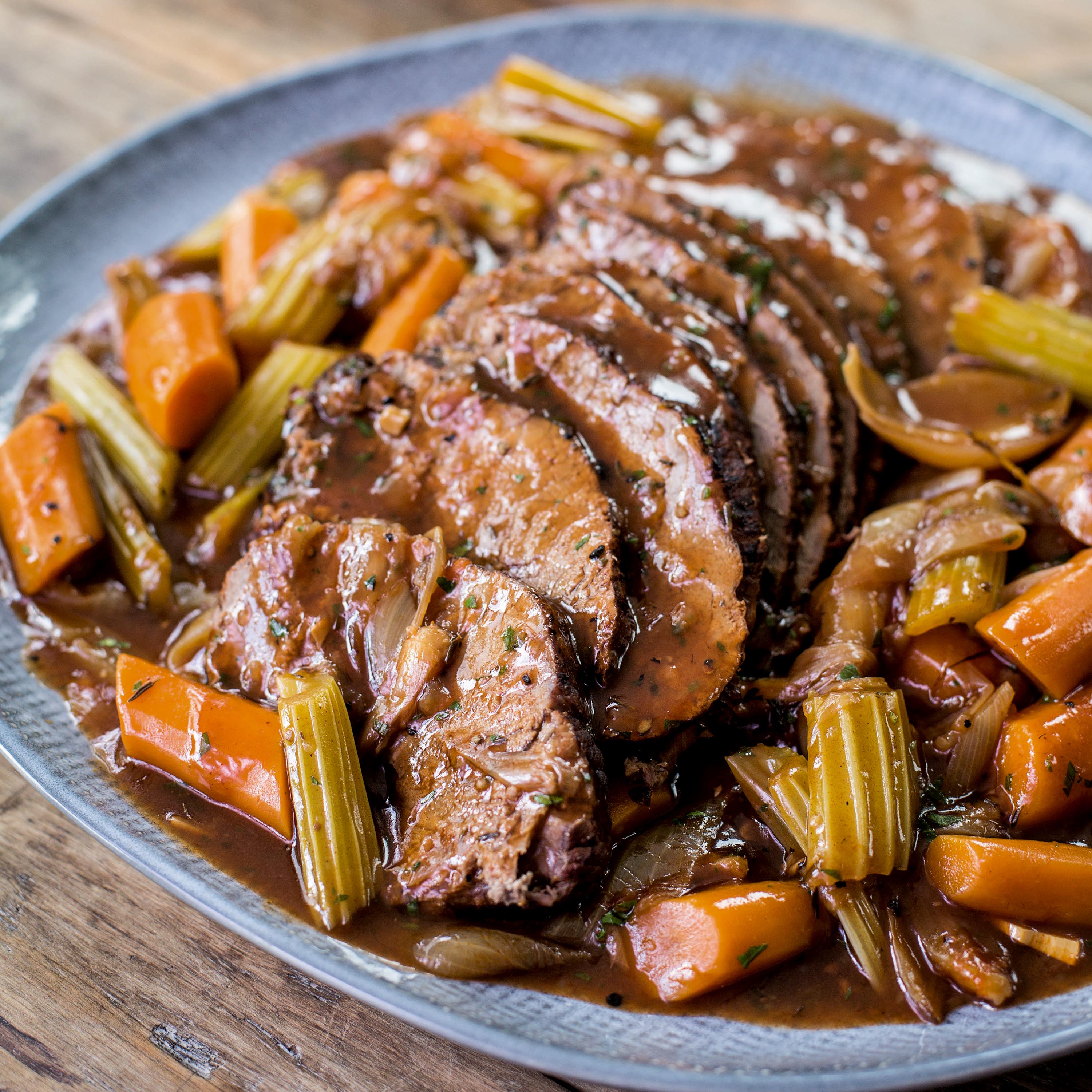 Slow cooker topside beef. Allow 20 minutes per 450g for medium 15 minutes per 450g for medium-rare and 10-15 minutes per 450g for rare. Fry the carrot onion and celery in the same pan over a medium-high heat for about 10 mins. Turn the meat using large tongs.