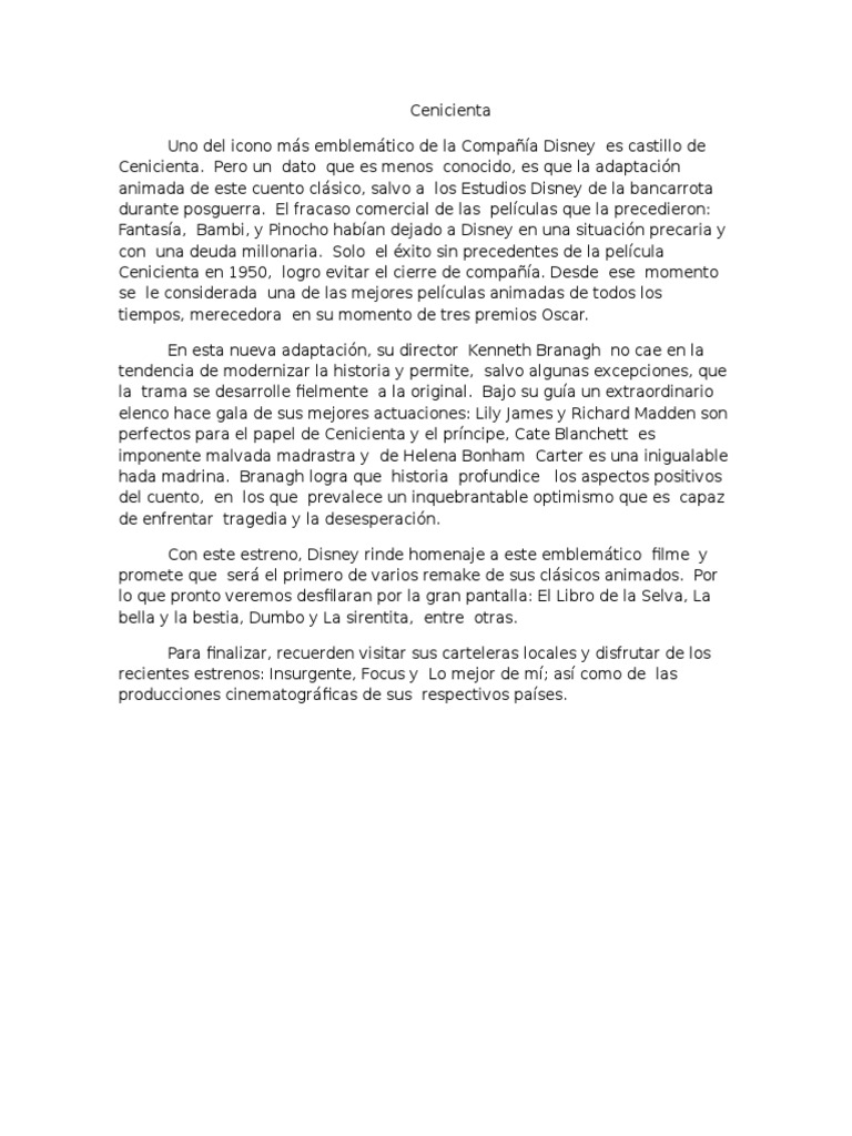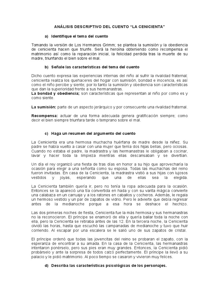 Pero ella sigue manteniéndose dulce y serena. Cuentos de Princesas - La historia de Cenicienta Disney Ajá. La niña visita la tumba de su madre todos los días para llorar y pasa un año. En la versión de Charles Perrault de Cenicienta escrita en 1697 Perrault describe la moraleja de la cuento como el valor de la gracia. By sakura Hz. En resumen amé esta película de principio a fin y la vería mil veces más. La trama del largometraje nos cuenta la historia de una chica amable y soñadora que es maltratada por su madrastra y hermanastras. La idea de que a las personas buenas les suceden cosas buenas o cómo se recompensa a las personas buenas por su bondad también se refleja en esta cuento. Erase una vez una joven muy buena llamada Cenicienta.