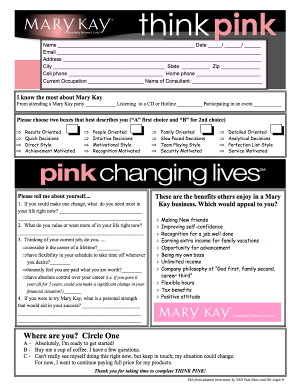 Ill share some facts about our career. The process took 1 week. Read all the field labels carefully. About Press Copyright Contact us Creators Advertise Developers Terms Privacy Policy Safety How YouTube works Test new features Press Copyright Contact us Creators. DiSC for your MARY KAY business revised by SSD Melissa Mays The following question might help you ascertain someones behavioral styleTell me a little bit about yourself. Interview Guide Date Consultant Prospect Name Address City St Home Work Cell Best Time to Call Email Address Consultant Comments. This is just one of the solutions for you to be successful.